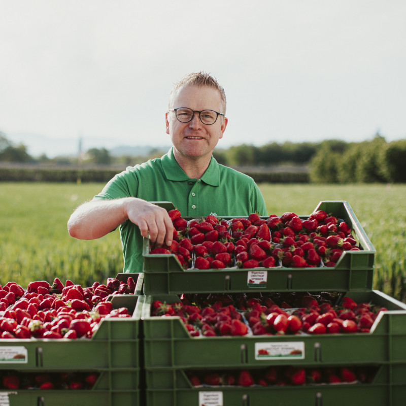 Die Erdbeere ist eine ganz besondere Frucht, denn sie ist die erste frische Frucht im Jahr, die man ernten und gleich essen kann. Sie ist nicht nur genussvoll und aromatisch, sondern auch noch gesund. Die Erdbeerzeit beginnt bei uns meistens schon Ende April, je nach Witterung und dauert dann meistens ca. 11 bis 12 Wochen. Damit wir über einen solch langen Zeitraum ernten können, haben wir verschiedene Erdbeersorten und Kulturtechniken. Auf einem Feld können wir meistens nur 3 bis 4 Wochen ernten, dann sind alle Früchte von den Erdbeerpflanzen abgeerntet.